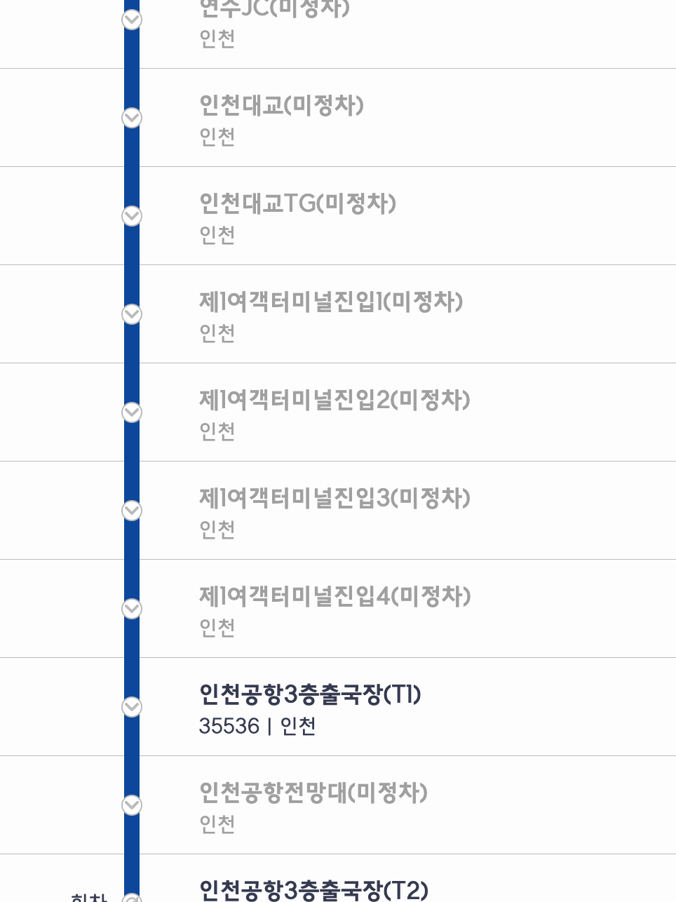 - 도착지: 인천국제공항 제2터미널 (3층 출국장)