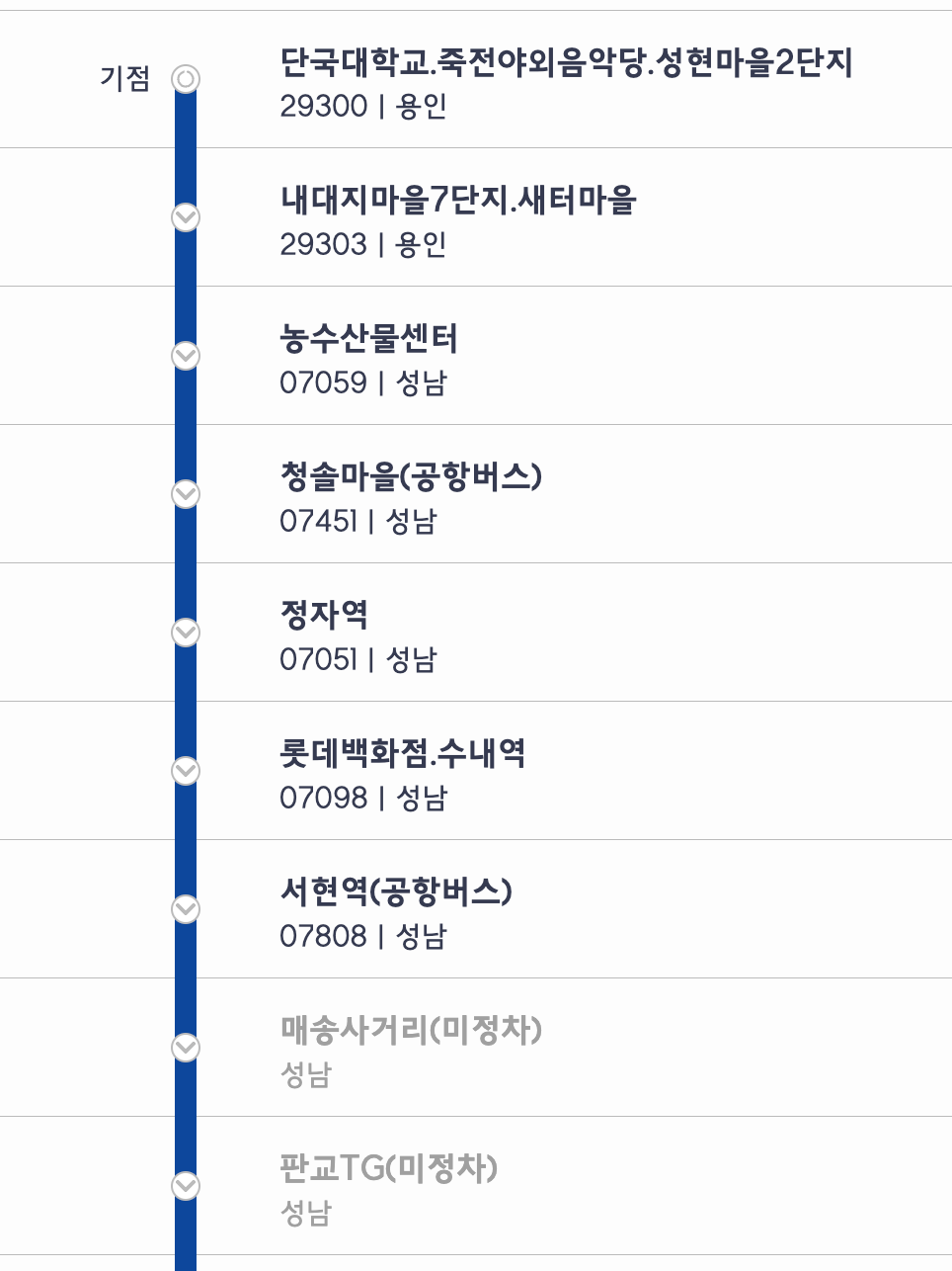 - 경유지: 죽전아외음악당, 성현마을2단지, 청솔마을(공항버스)
