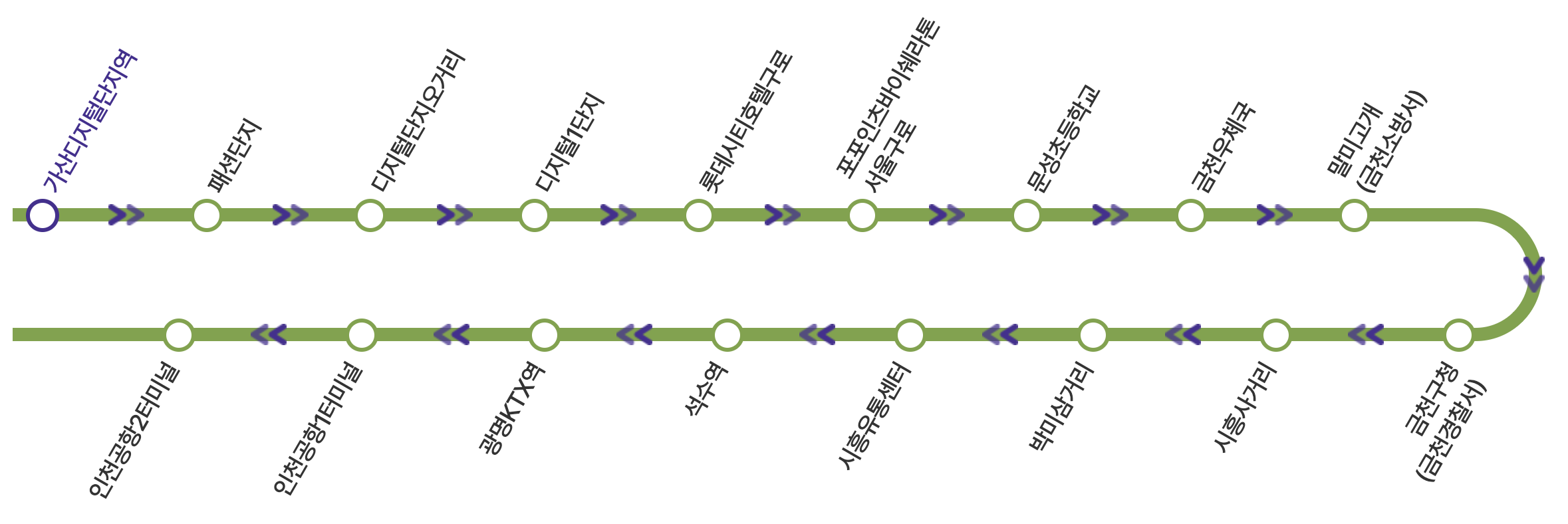 - 가산디지털단지역: 2번 출구, 야시장 식당 앞 (정류장 번호: 18779)