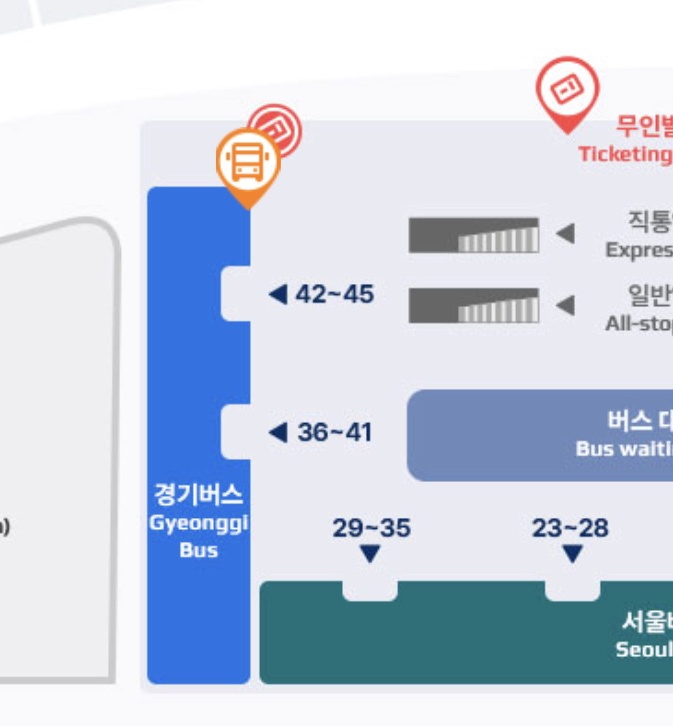 인천국제공항 제1여객터미널과 제2터미널 모두에서 승차 가능합니다. 탑승장은 ‘버스 아이콘’이 있는 위치이며, 터미널 3층 출국장 근처입니다.
