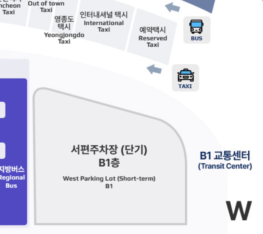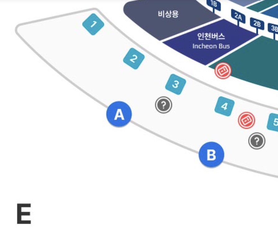 인천공항내 탑승장소는 다음과 같습니다. (버스아이콘으로 표시)
