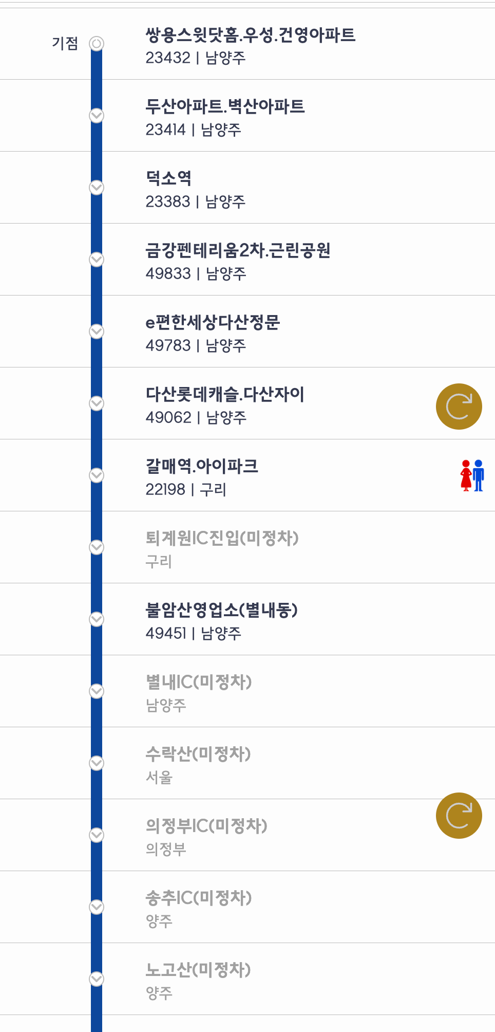 구리 (기점) | 04:30 | 18:00 | 150~180분 |