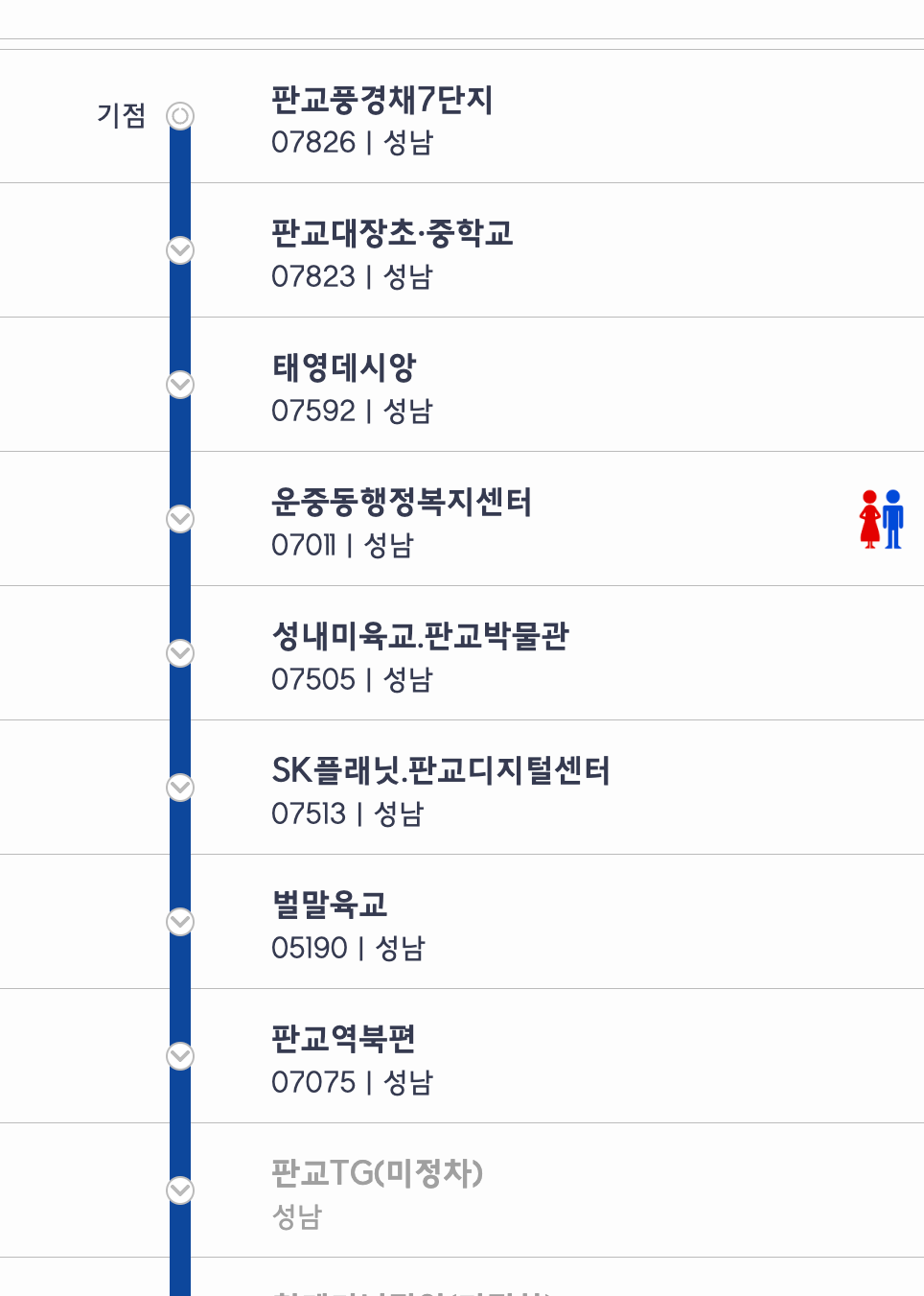 운중동행정복지센터를 경유하며, 중간에 TG나 JC는 통과만 합니다.